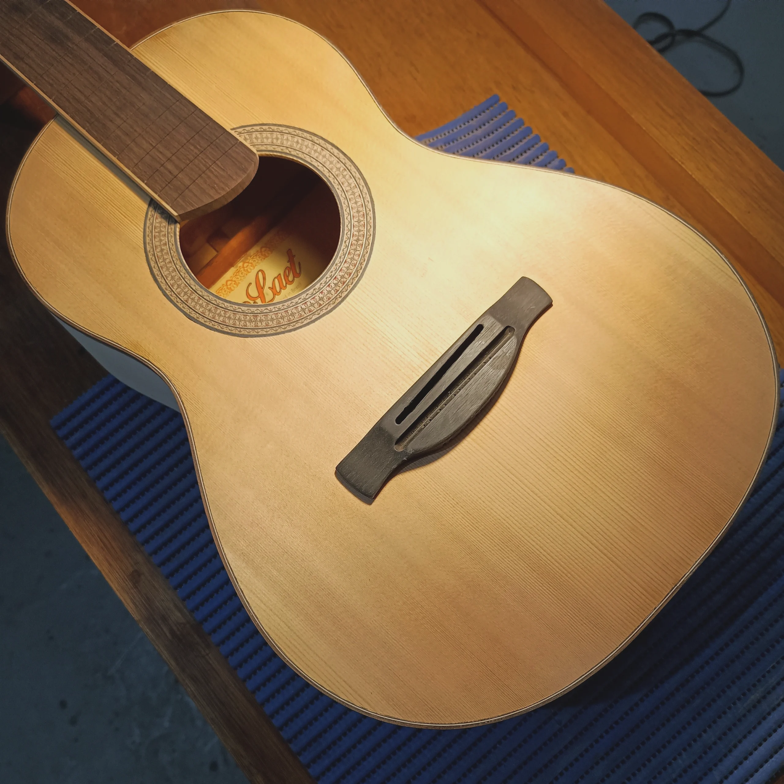 Selecionados pessoalmente por De Laet, os tampos trabalhados individualmente para construção personalizada passam por um processo de triagem muito rigoroso – desde o nível de umidade adequado, capacidade de resposta do som e até mesmo um teste visual – para garantir que você tenha simplesmente o melhor para o seu instrumento. Os tampos mais leves são usados na construção e, cada um, sendo avaliado individualmente, calibrado, trabalhado o leque harmônico, esculpido e harmonizado (ou “timbrado”, como dito coloquialmente). De Laet trabalha do início ao fim cada instrumento para garantir que cada um carregue nossa assinatura timbrística e capacidade de resposta, longo sustain, graves profundos e agudos cristalinos, bem como tocabilidade uniforme em todo o braço.